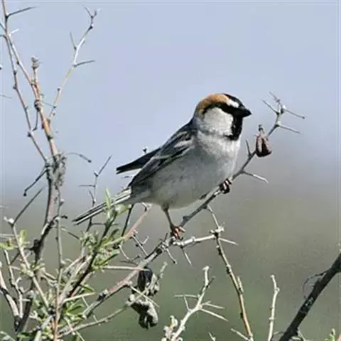 山麻雀:小型鸟类,体长13-15厘米。雄鸟上体栗红色,背中央具黑色纵纹,头棕色或淡灰白色,颏、喉黑色,…