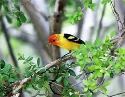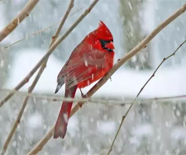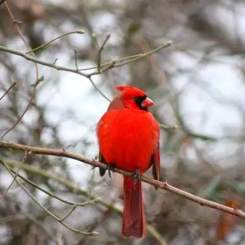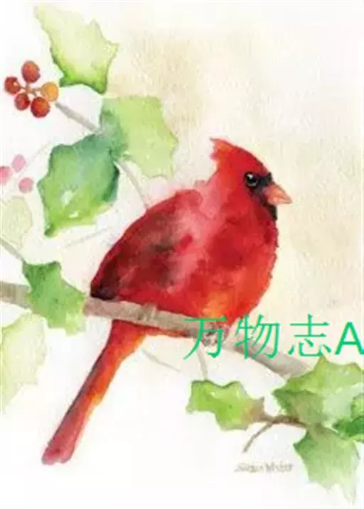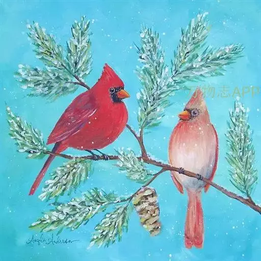 北美红雀(学名:Cardinalis cardinalis):体型中等,体长24厘米,翼展25-31厘米,体重 42-48克。雄鸟呈鲜红色,面部呈黑色,一直伸延至上胸。背部及双翼最为沉色。雌鸟呈灰棕色,双翼、冠及尾羽上有红彩。 雌雄异形,均有羽冠。北美红雀的学名意义是天主教会的枢机,因枢机有着明显的红袍及帽子。皇冠般傲立的穗状头冠和一身烈焰般的羽毛异常醒目,是世界上最美丽耀眼的鸟类之一。
