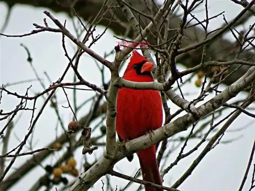 2002年1月6日,在美国印第安纳州威尔斯曼森林自然保护区,一只帅气的北美红雀在工作人员的手中玩耍。工作人员对这里每种鸟儿的生活习性都进行仔细的观察和记录,以便日后进行深入研究。