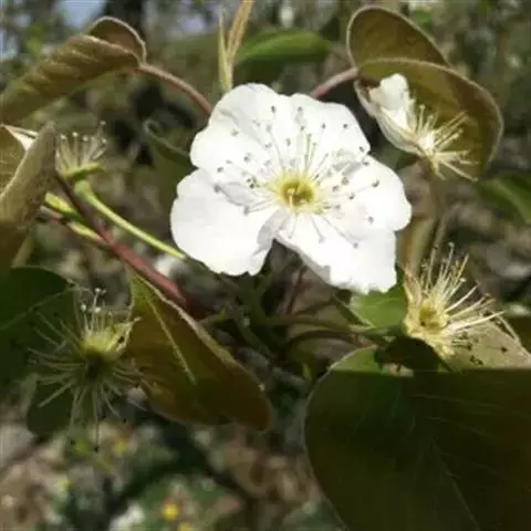 白梨蔷薇科,苹果亚科,梨属高5-8米乔木,树冠开展;二年生枝紫褐色,叶片卵形或椭圆卵形,…