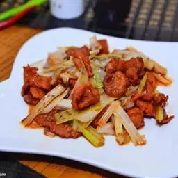 2. 将五花肉洗干净,切成薄片,葱、姜切成末,待用。
