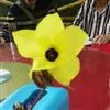 花单生于叶腋间,花梗长1-2厘米,疏被糙硬毛;小苞片8-10,线形,长约1.5厘米,疏被硬毛;花萼钟形,较长于小苞片,密被星状短绒毛;花黄色,内面基部紫色,直径5-7厘米,花瓣倒卵形,长4-5厘米。