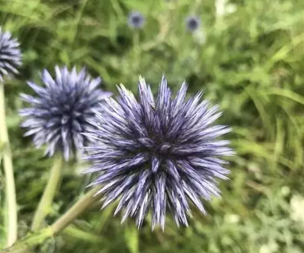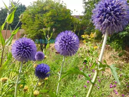 蓝刺头 蓝刺头球形的复头状花序别致可爱,淡蓝色,具金属光泽,还有植株高大、株型匀称、生长健壮、适应性强的特点,有广阔的应用前景。如果用于切花生产,则有花色清新,观赏期长、花后可作自然干花的特点;如果用于园林绿化,则有管理粗放、适应性强 、维护成本低的特点,又因其是高海拔草甸和山地特有的野生花卉,花色纯美、花型别致、独具一格,容易为城市园林景观带来不一样的效果。