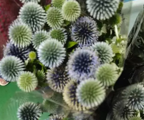 作为观赏植物,蓝刺头又名蓝星球,颜色为蓝灰色,形态有“单头型”和“多头型”两种,还可制成自然的干燥花(须先将一部分叶片去除,倒吊在通风处,一星期即可完成干燥)。