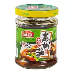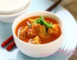 烧热锅,放入猪油25 g,把切碎的小葱头25 g下锅煸至金黄色时,再加入料酒、顶汤250 g、精盐、茄汁25g、黄姜粉5 g、椰子汁40g玉果粉3g、鸡油25 g、黄油5g滚烧5分钟,待汤滚至金黄色时,用纱布滤清倒入净锅内。然后将蒸酥的旗参滗干水,放入锅内,加入味精,用文火滚烧三至四分钟,再用水淀粉40 g勾芡,加入牛奶50 g,搅匀装盆,撒上炸杏仁末10 g,一盆杏黄色的扒旗参制成了。