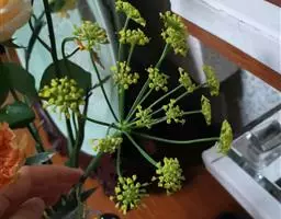 复伞形花序生于茎枝顶端,直径8-12厘米,无总苞片;伞辐5-25,近等长,被柔毛,中央花序近无梗,侧生花序1-4,较小,在枝上对生或轮生,稀单生,长常超出中央花序,植株成熟时增粗;小伞形花序有花10-20,小总苞片宽披针形,脱落;萼齿小;花瓣黄色,椭圆形,长达2毫米,顶端渐尖,向内弯曲,沿中脉色暗,向里微凹,外面有毛;花柱基扁圆锥形,边缘增宽,波状,花柱延长,柱头头状。分生果椭圆形,背腹扁压,长10-12毫米,宽5-6毫米,有疏毛,果棱突起;每棱槽内有油管3-4,大小不一,合生面油管12-14。花期4-5月,果期5-6月。