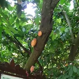 可可是锦葵科、可可属常绿乔木,树冠繁茂,树皮厚,暗灰褐色;嫩枝褐色,被短柔毛;花五瓣,淡黄色,…
