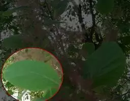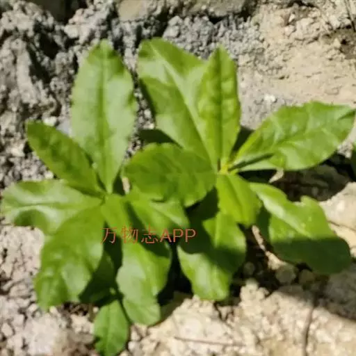 叶互生或近对生,具短柄或近无柄,叶片稍肉质,倒卵形或倒卵状长椭圆形,长5-10厘米,宽2.5-5厘米,顶端急尖,有时微凹,具短尖头,基部狭楔形,全缘。