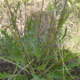 多年生草本,分枝或有时不分枝或少分枝。茎粗壮,直立,高约1米,基部径约8毫米,基部木质,上部多分枝,有沟纹,密被淡黄色腺状柔毛,节间长1-2.5厘米,翅全缘,宽2-5毫米。