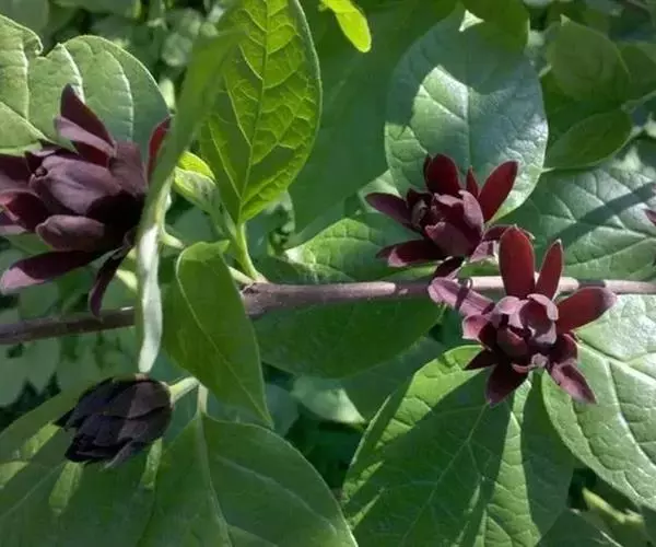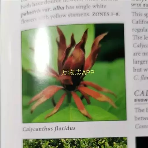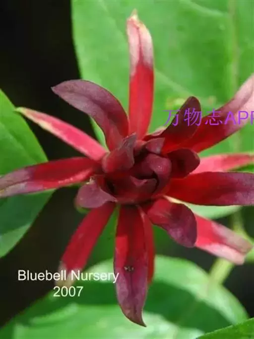 光叶红(Calycanthusfloridusvar.glaucus(Willd.) Torr. et A.Gray):与原变种的不同在于本变种的叶、叶柄及枝条均无毛或几无毛。花期6月。原产于北美。栽培于中国江西庐山植物园。观赏植物。