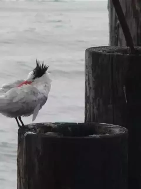 红嘴巨鸥,大型水鸟,体长47~55厘米。夏羽前额、头顶、枕和冠羽黑色。后颈、尾上覆羽和尾白色,…