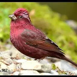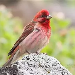 藏朱雀:全长约17-18厘米。雄鸟头部深红色具光辉,喉部暗红色具白色点斑;背部灰白色,各羽具玫瑰红…