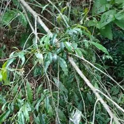 性状鉴别:根茎近圆柱形 九节龙分子化学式 。茎圆柱形,长短不一,直径约4mm,表面有铁锈色长柔毛。叶互生,叶片椭圆状披针形,上面中脉处有毛,下面密被铁锈色长柔毛,两面密布腺点,全缘或有微波状圆齿,坚纸质。有时可见伞形花序。气弱,味苦、涩。
