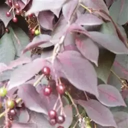 果球形,直径5-7mm,深红色或带黑色.具腺点.被毛。花期5-7月.果期2-5月。