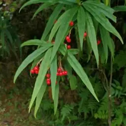 出自《本草图经》:百两金,叶似荔枝,初生背面俱青,结花实后,背紫面青。苗高二、三尺,有干如木,…