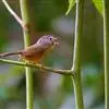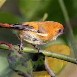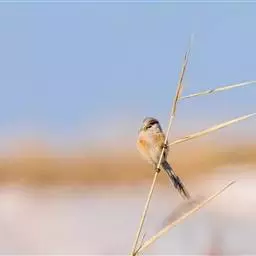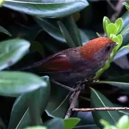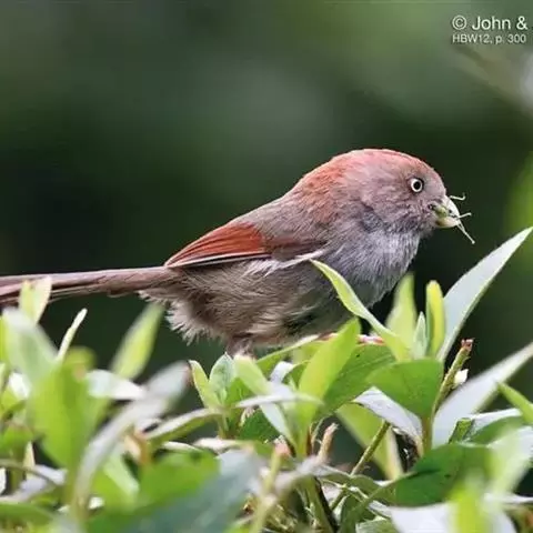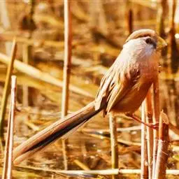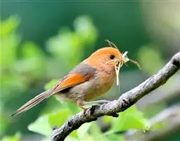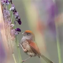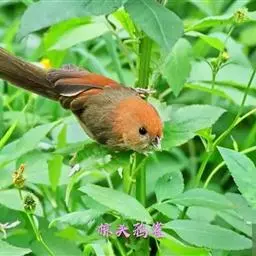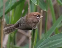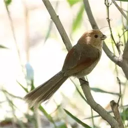 行为:留鸟。褐翅鸦雀主要栖息于林缘灌丛、竹丛、稀树草坡,以及芦苇丛和高草丛中。繁殖期间多成对或单只活动,其他季节多呈数只或10余只的小群。常隐蔽在灌丛和高草丛中活动和觅食,如无干拢,一般很少飞翔,因而不易看到,常常仅听见叫声而难以见于踪影。