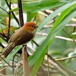 褐翅鸦雀(学名:Sinosuthora brunnea)是莺科、鸦雀属小型鸟类,体长11-13厘米。嘴短而粗厚、似鹦鹉嘴,头、后颈和颈侧栗红色。上体橄榄褐色,翅缘褐色。颏、喉、胸葡萄红色具细的栗红色纵纹。虹膜棕红或深红色,嘴乳黄或角黄色,嘴乳黄或角黄色,嘴嵴较暗或为黑色,脚暗褐、肉褐或绿铅色。