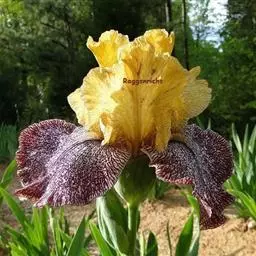 德国鸢尾,为鸢尾科鸢尾属的植物。根状茎粗壮,扁圆形,有环纹;叶绿色灰绿色,堂具白粉,…