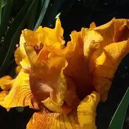 亮叶鸢尾为常绿多年生草本植物。叶面光滑、亮绿色,花茎扁平叶状。原产于巴西。