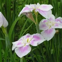 双色野鸢尾为多年生草本植物,叶子呈剑状淡绿色。…