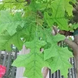 ◎ 落叶乔木,叶子长椭圆形,结球形坚果,叶可喂蚕;木材坚硬,可制家具,供建筑用,树皮可鞣皮或做染料。亦称“麻栎”、“橡”;通称“柞树”。
