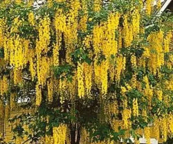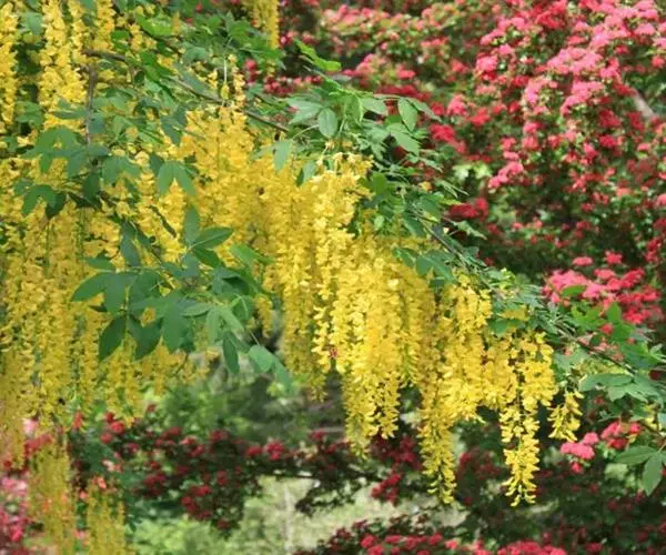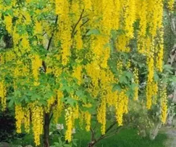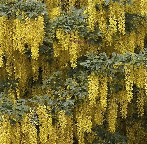 毒豆,春、夏之交开花,花期长,花色金黄鲜艳,花穗长似金链,通常用于行道树和长廊绿化, 形如黄色瀑布,壮观迷人。秋天叶色鲜艳,是优良的观叶树种。也可以孤植或群植,利用其柔软的枝条,塑造成不同的造型;或与其他彩色植物搭配,点缀在草坪或石旁,具有非常美丽的造景效果。也可以作为庭院树,美化居住环境。