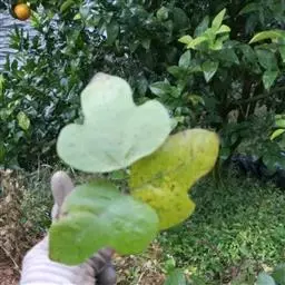 小乔木,高2-5米。嫩枝被黄色贴伏毛,后渐脱落,枝条平展或下垂,老枝褐色,光滑。三出复叶,具长柄,长3-8厘米;托叶细小,早落;小叶椭圆形至长圆状椭圆形,长3-8厘米,宽1.5-3厘米,纸质,先端钝圆,具细尖,基部阔楔形,上面平坦近无毛,下面被贴伏细毛,脉上较密,侧脉6-7对,近叶边分叉不明显。