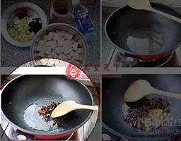 6.炒锅放油,加入大茴、花椒和麻椒炸香,将炸好的花椒和麻椒捞出一大半备用。