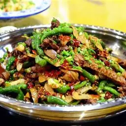 辅料:碎米芽菜、花生(炒)、蒜、葱、白糖