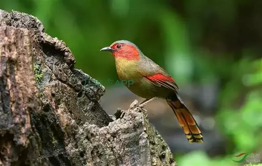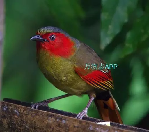 红翅薮鹛(学名:Liocichla phoenicea)是噪眉科、薮鹛属中型鸟类,体长21-24厘米。头顶灰褐色,头侧和颈侧赤红色,上体橄榄褐色,翅上具红色块斑,尾具红色或橙黄色块斑,下体灰色沾褐。虹膜褐色或红色,嘴黑色,脚暗褐色或淡灰褐色。