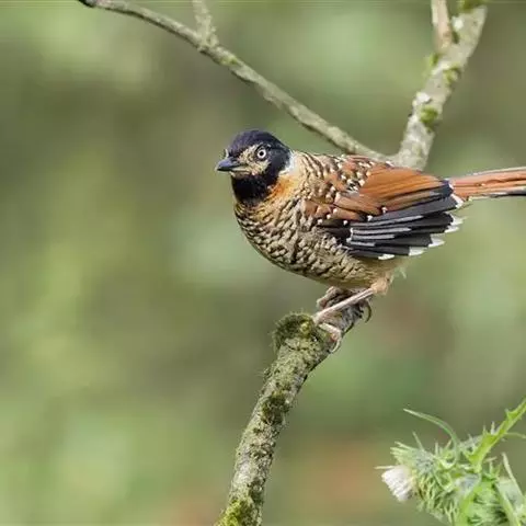 行为:留鸟。常成对或成3-5只的小群活动,有时亦单独活动。多活动在林下稠密的灌丛或竹丛间,也常到林下地上落叶层中觅食,很少上到高的乔木上。鸣声响亮甜润、富有变化,多为四声一度的哨音。