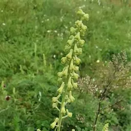 耧斗菜,拉丁学名:(Aquilegia viridiflora Pall.),为双子叶植物纲、毛茛科、耧斗菜属下的一个植物种。原产于欧洲和北美。为多年生草本植物,根肥大,圆柱形,粗达1.5厘米,简单或有少数分枝,外皮黑褐色。根出叶,叶表面有光泽,背面有茸毛,在6、7月间开花,通常深蓝紫色或白色,花药黄色,供药用。