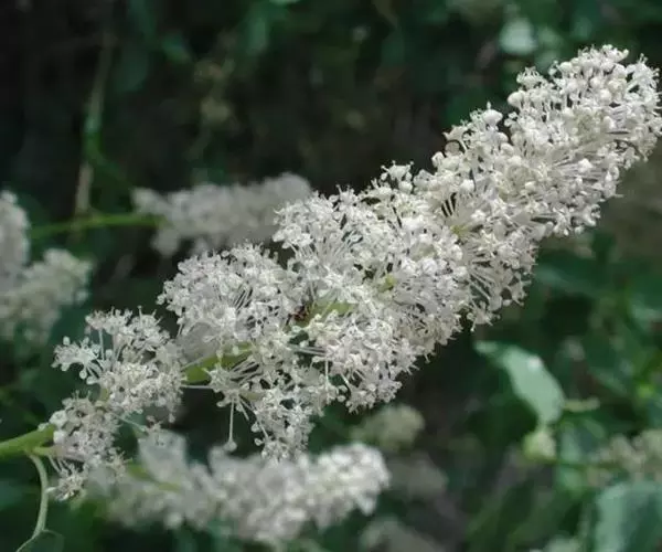 顶生大型密集圆锥花序,分枝近于直立,长10-20厘米,直径5-12厘米,总花梗和花梗被星状毛或短柔毛,果期逐渐脱落,近于无毛;苞片卵状披针形至线状披针形,长5-10毫米,宽3-5毫米,先端长渐尖,全缘或有浅齿,上下两面微被柔毛,果期逐渐脱落;花梗长5-8毫米;花直径10-12毫米;萼筒钟状,外面基部微被短柔毛;萼片三角卵形,先端钝或急尖,萼片约与萼筒等长;花瓣长圆形或倒卵形,长5-7毫米,宽3-5毫米,白色;雄蕊40-50,约长于花瓣1.5-2倍,生在花盘边缘;心皮5,无毛或稍具柔毛。