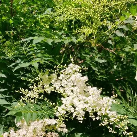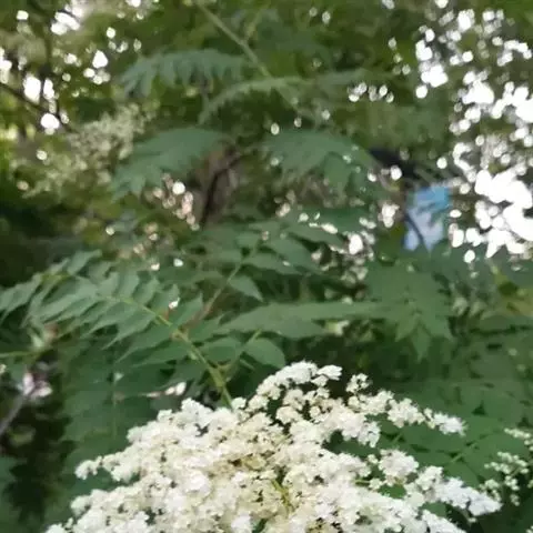 珍珠梅(学名:Sorbaria sorbifolia (L.)A. Br)是蔷薇科,珍珠梅属灌木,高可达2米,枝条开展;冬芽卵形,紫褐色,先端圆钝,具有数枚互生外露的鳞片。羽状复叶,小叶片对生,披针形至卵状披针形,先端渐尖,稀尾尖,基部近圆形或宽楔形,稀偏斜,边缘有尖锐重锯齿,上下两面无毛或近于无毛,羽状网脉,托叶叶质,顶生大型密集圆锥花序,分枝近于直立,总花梗和花梗被星状毛或短柔毛,果期逐渐脱落,苞片卵状披针形至线状披针形,先端长渐尖,全缘或有浅齿,上下两面微被柔毛,果期逐渐脱落;萼筒钟状,萼片三角卵形,先端钝或急尖,萼片约与萼筒等长;花瓣长圆形或倒卵形,白色;雄蕊生在花盘边缘;心皮无毛或稍具柔毛。蓇葖果长圆形,有顶生弯曲花柱,7-8月开花,9月结果。