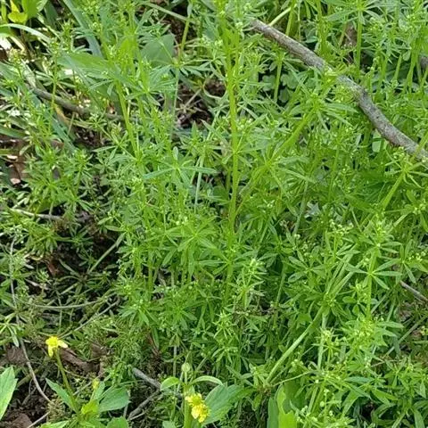 六叶葎 Ehrend. & Schönb.-Tem. ex R. R. Mill)是茜草科拉拉藤属的一年生草本。常直立,有时披散状,高10-60厘米左右,近基部分枝,有红色丝状的根;茎直立,具疏短毛或无毛;叶片薄,纸质或膜质,长圆状倒卵形、倒披针形、卵形或椭圆形顶端钝圆而具凸尖;聚伞花序顶生和生于上部叶腋,苞片常成对披针形,花冠白色或黄绿色,裂片卵形,雄蕊伸出;果近球形,单生或双生,密被钩毛;花期4-8月;果期5-9月。六叶葎分布于中国北、山西、陕西、甘肃、江苏、安徽、浙江、江西、河南、湖北等地,印度、巴基斯坦、尼泊尔、锡金、不丹、缅甸、日本、朝鲜、俄罗斯均有栽培。生于海拔920-3800米的山坡、沟边、河滩、草地的草丛或灌丛中及林下。六叶葎味甘,性平,具有清热解毒、利尿消肿的功效,可用于治疗尿路感染、赤白带下、痢疾、痛肿、跌打