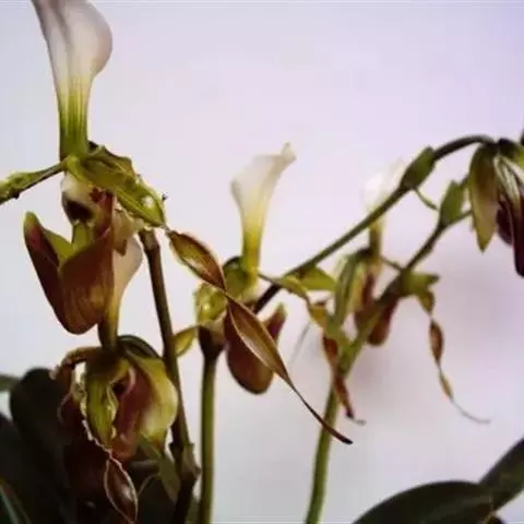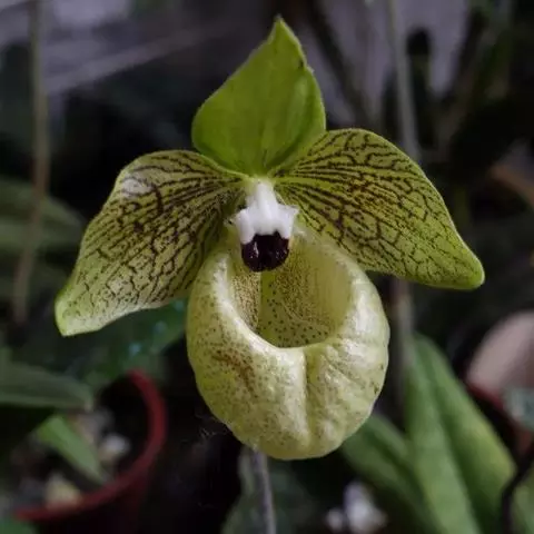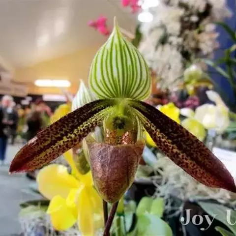 小叶兜兰兰科,兜兰属地生或半附生植物。叶基生;数枚至多枚,叶片带形、革质。花葶从叶丛中长出,花苞片…