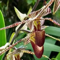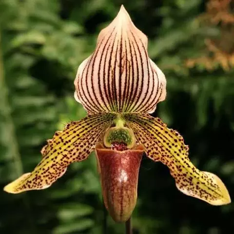 紫纹兜兰 Stein)是兰科兜兰属的地生或半附生植物。叶基生,叶片狭椭圆形或长圆状椭圆形,…