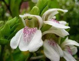 总状花序顶生或腋生,花梗长达2厘米;小苞片长圆形,长2.5~3厘米,1.5~2厘米宽,先端渐尖,边缘向先端密被短柔毛,向轴面边缘粘连成佛焰苞状;花冠管和喉白色,冠檐淡蓝色,花冠管长7毫米,喉长25毫米,冠檐裂片圆形,径20毫米,花丝基部变厚,长8和10毫米,花药内藏于喉中部,先端尖,除去距长7毫米,缝处有弯曲髯毛,距长2.7和3.2毫米,另一花药距长1.0和2.5毫米。花粉粒直径54微米。子房和花柱无毛,花柱长26毫米,柱头内藏。