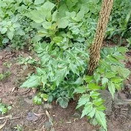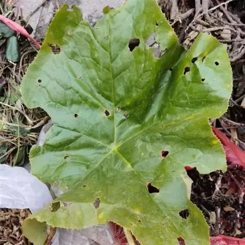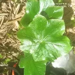 多年生草本,高40-80厘米。下部叶柄长7-20厘米,上部叶柄长(2.5-)6-13厘米长;叶片盾状着生,肾形或肾状圆形至横向长圆形,下部叶片长19-40厘米,宽20-46厘米,上部叶片长6.5-31厘米,宽19-42厘米,呈2半裂,每半裂具3-6浅裂或波状,边缘具不规则锯齿,齿端具尖头,上面疏被柔毛或近无毛,背面被柔毛。