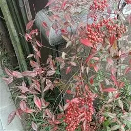 南天竹,小檗科南天竹属常绿小灌木植物,茎干较高,表面光滑无毛,红色;叶较小,叶片薄,…