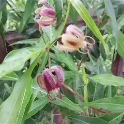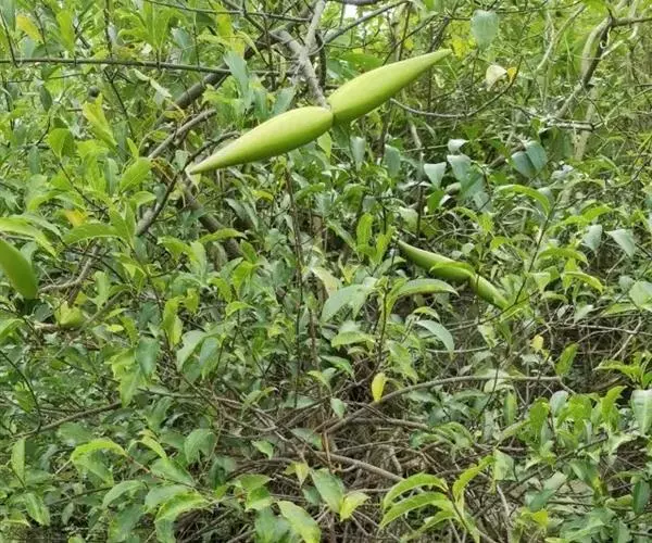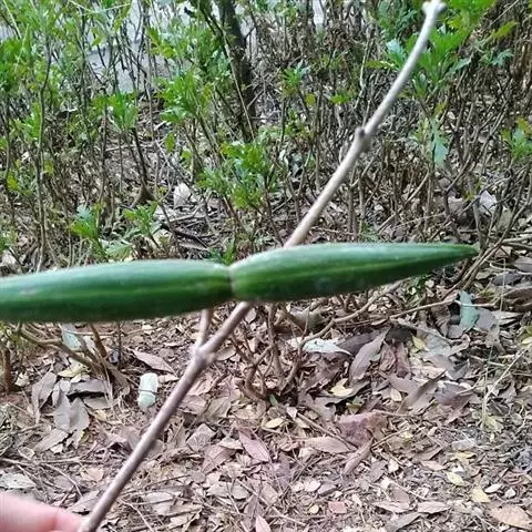 蓇葖广叉开,木质,椭圆状长圆形,顶端渐尖,基部膨大,长10-15厘米,直径2-3.5厘米,外果皮绿色,干时黑色,具纵条纹;种子纺锤形、扁平,长1.5-2厘米,宽3-5毫米,中部略宽,上部渐狭而延长成喙,喙长2厘米,轮生着白色绢质种毛;种毛具光泽,长2.5-3厘米。花期3-7月,果期6月-翌年2月。