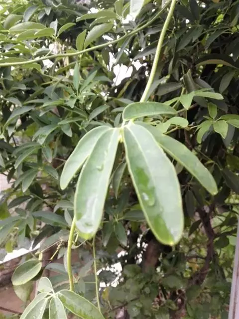 五月瓜藤是木通科八月瓜属植物。常绿木质藤本。茎与枝圆柱形,灰褐色,具线纹。掌状复叶有小叶5-7片;…