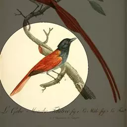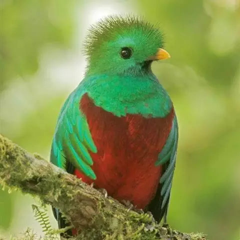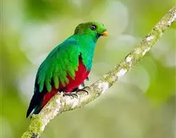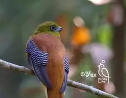 橙胸咬鹃:全长约28厘米。雄鸟头、颈橄榄绿色,上体及中央尾羽栗色;中央尾羽具黑色端,…