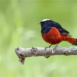 红头咬鹃: 体大,体长约33厘米,体重75-110克。头、颈暗绯红色;背、肩锈褐色。两翅黑色,…