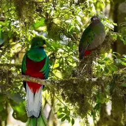 咬鹃共有1科6属39种,属小型攀禽。异趾形,1、2趾向后,3、4趾向前。羽色艳丽,具金属光泽。…