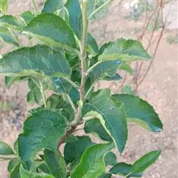 海棠花是乔木,高可达8米;小枝粗壮,圆柱形,幼时具短柔毛,逐渐脱落,老时红褐色或紫褐色,无毛;冬芽卵形,先端渐尖,微被柔毛,紫褐色,有数枚外露鳞片。叶片椭圆形至长椭圆形,长5-8厘米,宽2-3厘米,先端短渐尖或圆钝,基部宽楔形或近圆形,边缘有紧贴细锯齿,有时部分近于全缘,幼嫩时上下两面具稀疏短柔毛,以后脱落,老叶无毛;叶柄长1.5-3厘米,具短柔毛;托叶膜质,窄披针形,先端渐尖,全缘,内面具长柔毛。