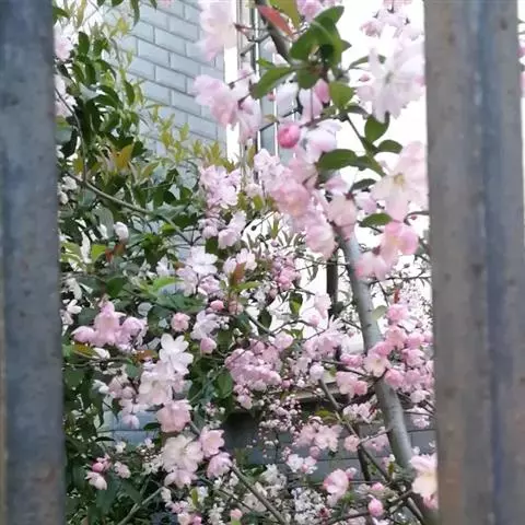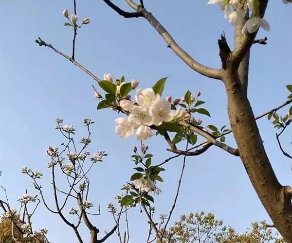 海棠花(学名:Malus spectabilis (Ait.)Borkh):乔木,高可达8米;小枝粗壮,圆柱形,幼时具短柔毛,逐渐脱落,老时红褐色或紫褐色,无毛。叶片椭圆形至长椭圆形,长5-8厘米,宽2-3厘米,边缘有紧贴细锯齿,有时部分近于全缘,幼嫩时上下两面具稀疏短柔毛,以后脱落,老叶无毛。花序近伞形,有花4-6朵,花直径4-5厘米;萼筒外面无毛或有白色绒毛;萼片三角卵形,先端急尖,全缘;花瓣卵形,长2-2.5厘米,宽1.5-2厘米,基部有短爪,白色,在芽中呈粉红色。果实近球形,直径2厘米,黄色。果期8-9月。