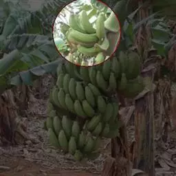 香蕉’),芭蕉科芭蕉属多年生草本植物,植株丛生,有匐匍茎;假茎浓绿有黑色斑点;叶片长圆形,…