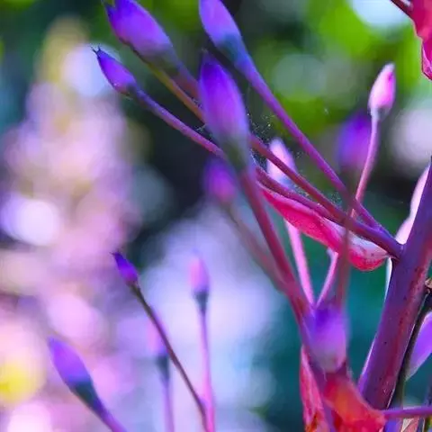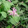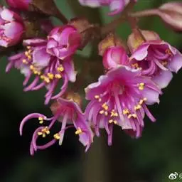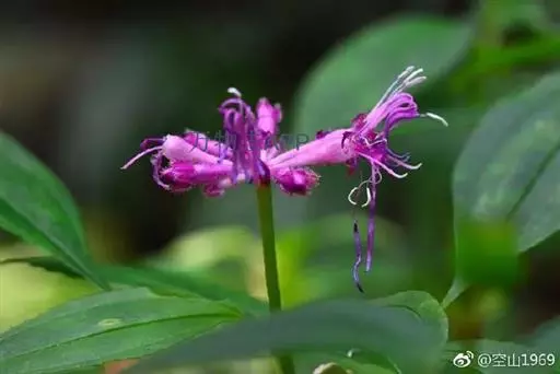 草本或亚灌木,高30-80厘米;茎四棱形,有槽,无毛,不分枝。叶片膜质,通常在一个节上的叶,大小差别较大,广披针形至卵形,稀披针形,顶端渐尖,基部浅心形,稀近楔形,长5-14.5厘米,宽2-5厘米,边缘具不甚明显的细锯齿,5基出脉,叶面被紧贴的;微柔毛,基出脉微凸,侧脉不明显,背面几无毛或被极不明显的微柔毛及白色小腺点,基出,脉明显,隆起,侧脉及细脉不明显;叶柄长1.5-4.3厘米,常被白色小腺点,仅顶端与叶片连接处具短刺毛。不明显的聚伞花序或伞形花序,顶生,总梗长1-3厘米,无毛,基部有1对叶,常早落;伞梗基部具1圈覆瓦状排列的苞片,苞片广卵形或近圆形,通常带紫红色,透明,长约1厘米;花萼长漏斗形,具四棱,长1.4-1.5厘米,被腺毛及白色小腺点,具8脉,其中4脉明显,裂片长三角形或卵状三角形,顶端钝,长约4.5毫米,被疏腺毛及白色小腺点,具腺毛状缘毛;花瓣红色或紫红色,长圆形,顶端偏斜,具腺毛状小尖头,长约1.1厘米,外面被紧贴的疏糙伏毛及白色小腺点;雄蕊长者花丝长约1.1厘米,花药线形,长约1.5厘米,弯曲,基部呈羊角状伸长;短者花丝长约7毫米,花药长圆形,长约3毫米,基部不呈羊角状;子房顶端具膜质冠,冠檐具缘毛。蒴果倒圆锥形,顶孔4裂,最大处直径约5毫米;宿存萼与蒴果同形,具不明显的8条纵肋,无毛,膜质冠伸出萼外,4裂。花期8-9月,果期约6月。