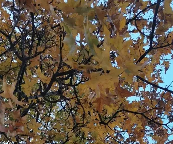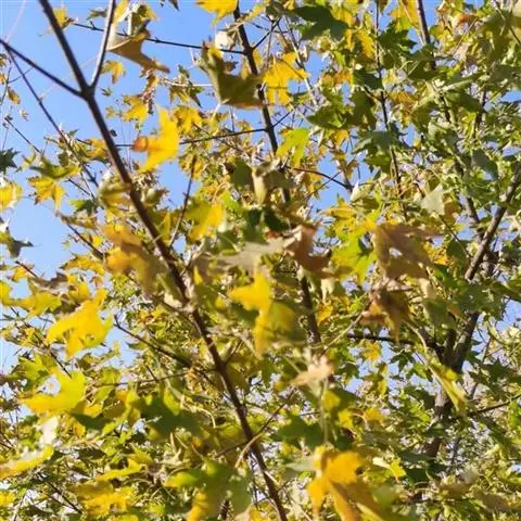 枫树为高大乔木,可高达29米以上,冠幅可达16米。花期4到5月,果期9到10月。随着树龄增长,树冠逐渐敞开,呈圆形。枝条棕红色到棕色,有小孔,冬季枝条是黑棕色或灰色。枫叶色泽绚烂、形态别致优美,可制作书签、标本等。在秋天则变成火红色,落在地上时变成深红。